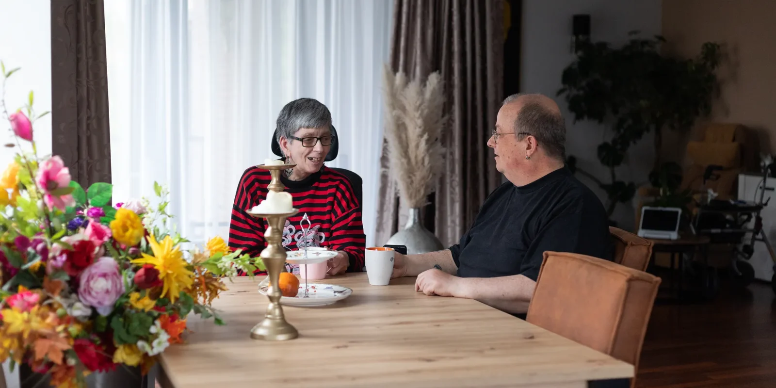 De kern van de Wet zorg en dwang past goed bij de visie van Ons Tweede Thuis. We kijken zelfbewust of we iemand niet te veel in zijn vrijheid beperken. We verbinden ons met elkaar in de driehoek cliënt-familie-begeleider om de best mogelijke en gewenste zorg te bieden. We zijn kwetsbaar in de gesprekken die we met elkaar voeren en in de risico’s die we nemen door vrijheid te vergroten. Begeleiders, familie en cliënten moeten lef hebben om oude patronen los te laten, te experimenteren en probeerruimte te geven. Onze kracht is dat we vrijheidsvergroting samen doen. Klik hier voor onze folder Wet zorg en dwang.
