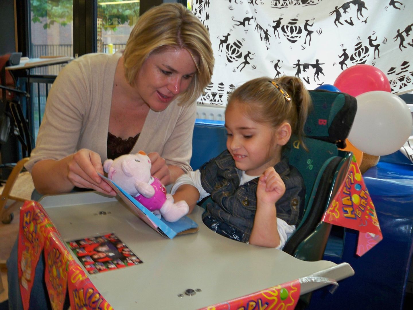 “Dat heb ik inderdaad niet zomaar gedaan” zegt Jenny. “Ik was op zoek naar opvang voor Tamzin want de combinatie van net gescheiden, de zorg voor haar en een baan om in ons levensonderhoud te voorzien, dat ging echt niet. Tamzin is zo gehandicapt dat ze constant zorg nodig heeft. Ze is volledig afhankelijk van verzorging en kan niets alleen. Ik moest dus wel een oplossing verzinnen. De eerste keer dat ik bij De Zevenster kwam was voor een intakegesprek. Ik zag een prettig gebouw en goed opgeleid personeel dat wist waar ze mee bezig was. Ik ben daar toen de hele dag geweest. Natuurlijk om mezelf te overtuigen, maar ook om te kijken of Tamzin een beetje op haar gemak was. De keuze om de hele dag te blijven of niet werd op deze manier echt bij ons gelegd, het ging eigenlijk allemaal heel voorzichtig. Wat me de volgende dagen opviel was dat ze Tamzin meteen accepteerden. Ik had daarvoor het idee dat kinderen met een handicap min of meer werden opgeborgen in zo’n centrum. Dat was helemaal niet het geval, er bleek een uitgebreid dagprogramma te zijn inclusief verschillende vormen van therapie. Zo krijgt Tamzin nu twee keer per week fysiotherapie, één keer per week logopedie en elke week gaat ze wel een keer zwemmen.