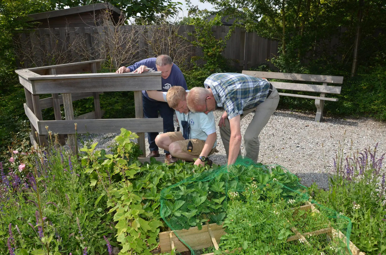 Begeleider Werner doet veel aan de tuin: “Het is nog niet zo makkelijk want er ligt veel puin onder de grond, maar we hebben steeds meer succes. In het bovengedeelte hebben we van alles geplant wat nu goed op begint te komen. Aardbeien en tomaten bijvoorbeeld. Het moet een soort van snoeptuin worden. Als je boven op de bankjes in de avondzon zit kan je gewoon wat pakken. Aardbeien, frambozen en aalbessen, het wordt echt een hele fijne plek.